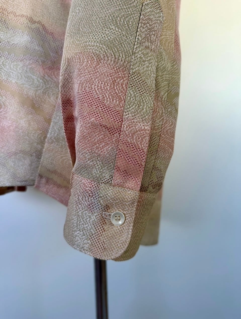 柔らかな質感の素材で、快適な着心地を提供します。おしゃれな印象を与える、この大島風のマオカラーシャツで、日々のコーディネートを楽しんでください。特別な日にも、カジュアルな日常にもぴったりです!